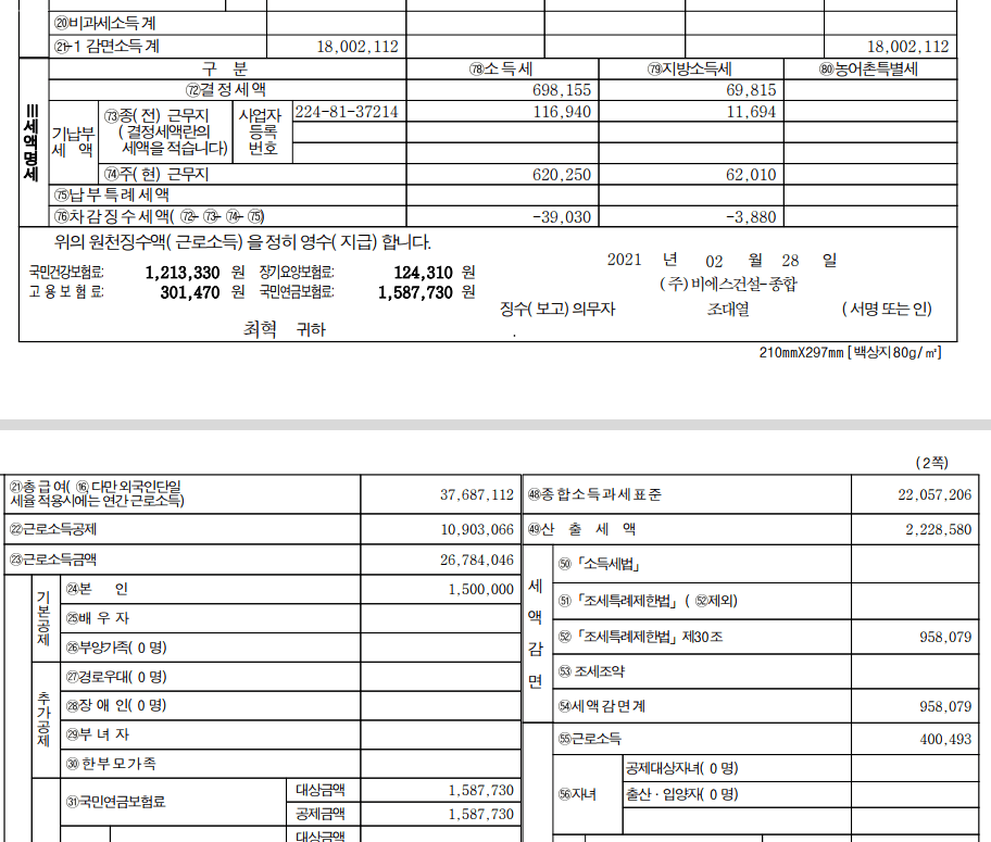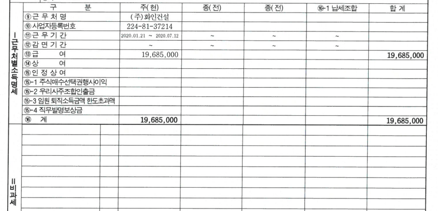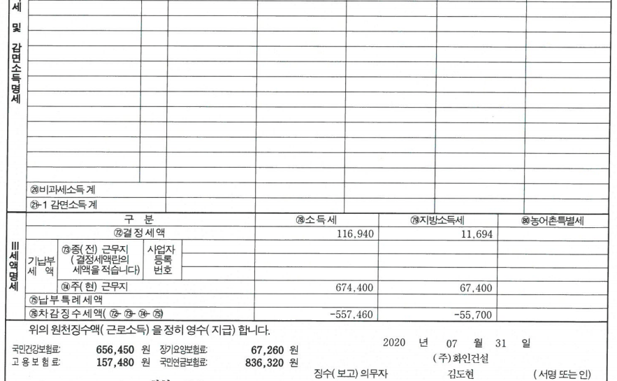 이건 현 근무지 원천징수 영수증이구요