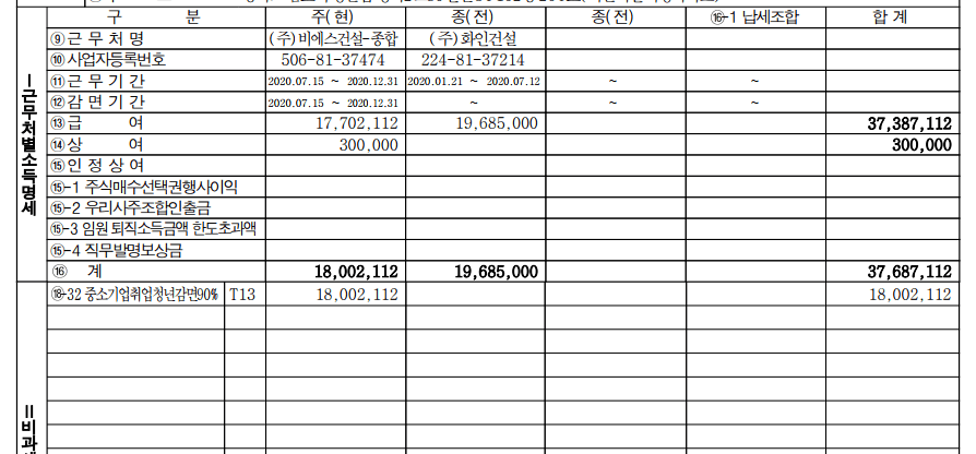 이건 전 근무지 원천징수 영수증인데 소득세 감면혜택을 받은건가요??