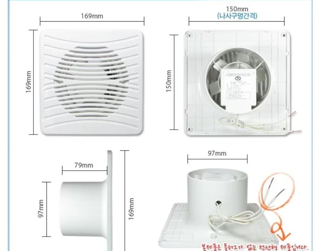 환풍기를 직접 교체하려고 하는데, 같은 모델말고 냄새 역류방지가 있는 같은 사이즈의 모델로 변경하고 싶은데요. 혹시 이미지의 사이즈랑 호환되는 환풍기 뭐 없을까요?