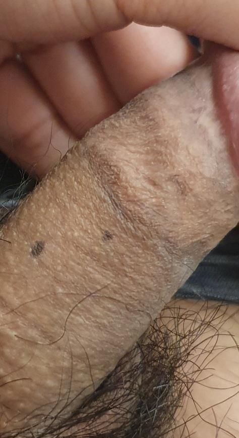 오랜시간에 거쳐 보시는 바와 같이 성기, 고환(음낭), 항문 주변에 점들이 많이 생겼습니다.