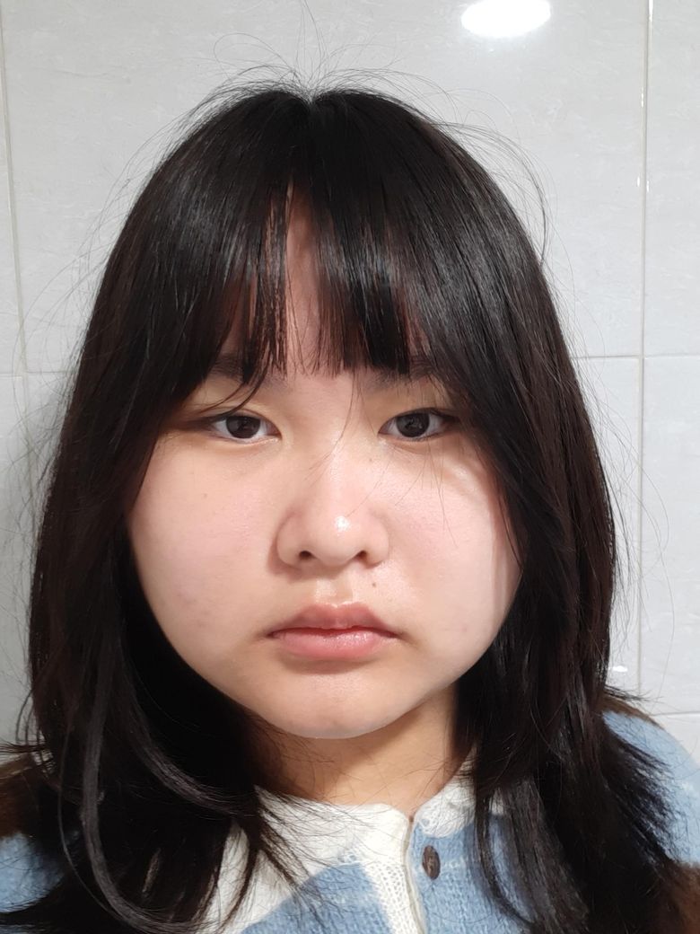 사진 속 얼굴은 둥근 얼굴형에 가까워 보이며, 둥근 얼굴형에는 일반적으로