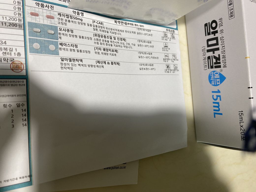 또한, 위의 약중 알마겔현탁액은 속쓰림이 호전되면 그만 복용하시고 나중에 증상 있을시 상비약처럼 복용하셔도 됩니다.