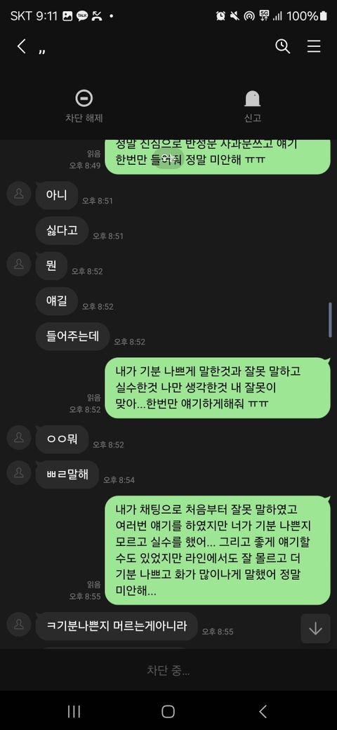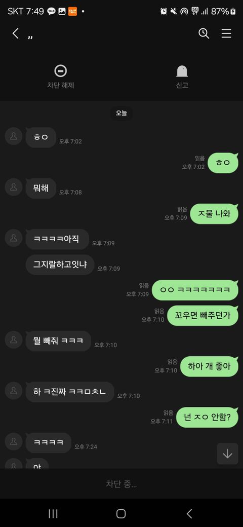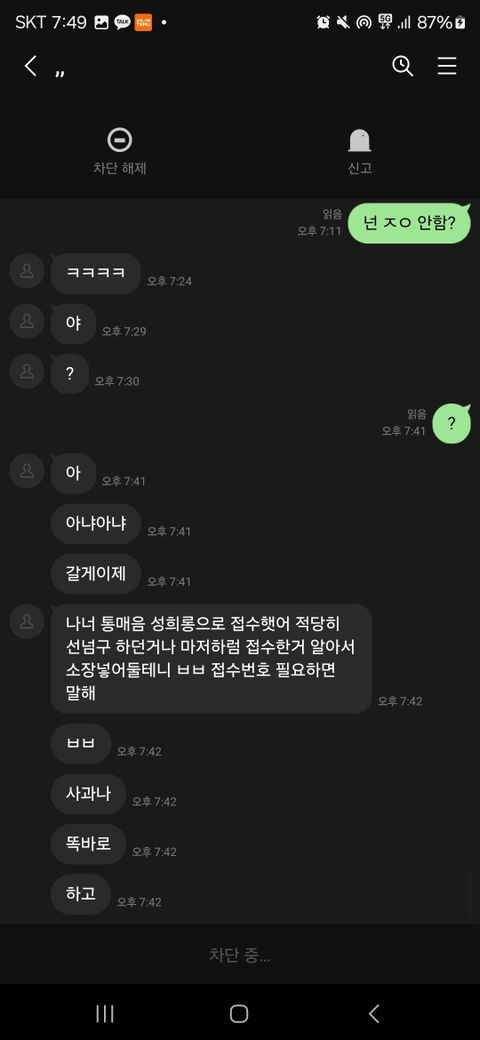 통매음 첫 앱에서 라인으로 넘어간 내용입니다