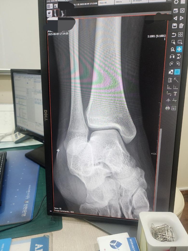 (엑스레이 사진은 정형외과 의원에서 촬영된 것입니다. 오른쪽 발목 부분)