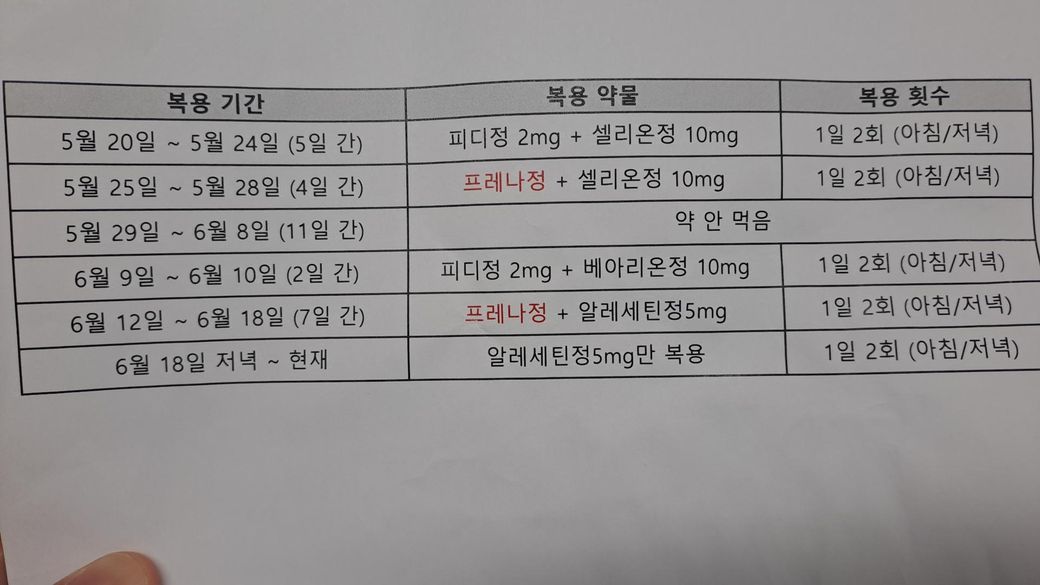 첨부와 같이 약을 먹었습니다.