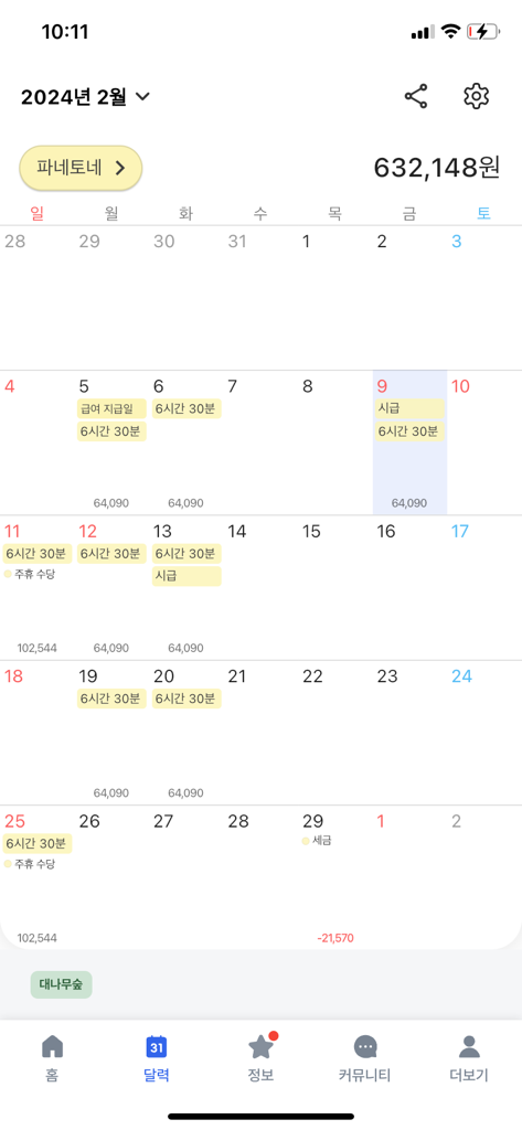 오늘 2월에 일한 것들에 대해 정산받았는데 주휴수당은 빼고 들어왔더라구요 가게 담당 노무사님께서 계산한 내용으로 월급을 받는데 제가 계산이 안 맞는 것 같다고 말씀드리니 추가근무 일당만 더 지급하면 된다는 부분을 캡쳐해서 사장님이 저한테 보내주셨어요 명세표를 확인해보니 근무시간은 맞게 들어왔는데 주휴수당은 하나도 안들어왔더라구요