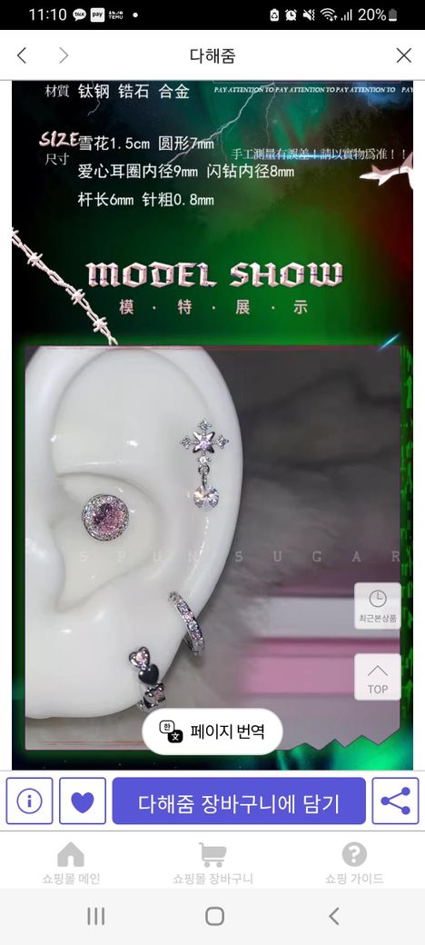 귀걸이사이즈좀알려주세욤 중국싸이트입니다! 고수님들