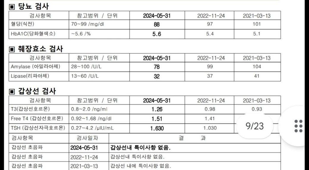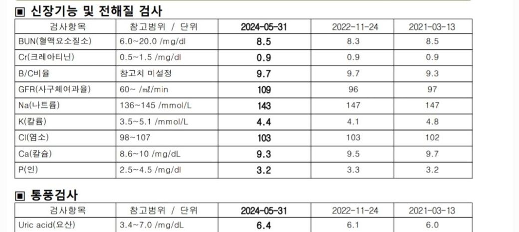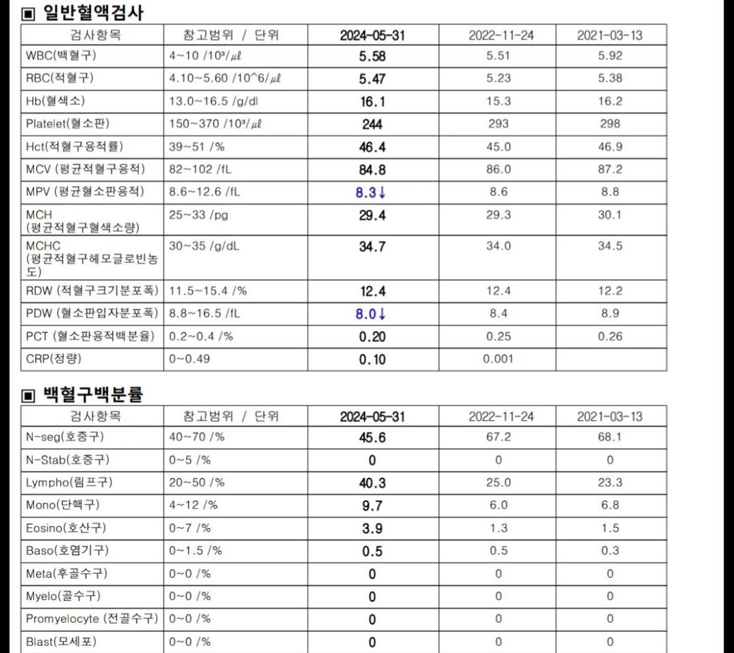 다른 피검사, 신장 검사, 내분비계 검사 수치는 다 정상으로 나왔는데요