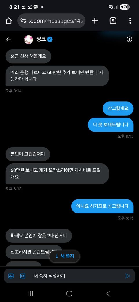 사기 계정 목록: @akaksj29ka(작성자 당시 피해 계정)