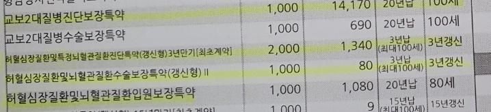 팁을 드리면 가장 포괄적인 보장은 순환계 질환입니다, 보험료가 걱정이라 갱신형의 보험료가 마음에 든다면, 20년 갱신형도 있으니 그것을 참고하시기 바랍니다