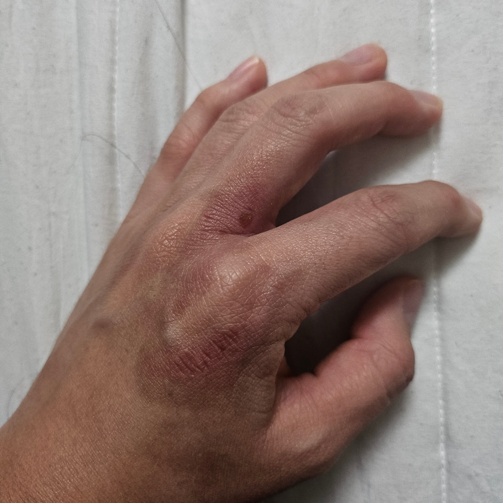 염증이 발생한 뒤에 서서히 진행하여서 변화한 소견일 가능성이 있어 보입니다. 관련하여서는 방치할 경우 계속 심해질 가능성이 있어 보이므로 피부과에서 진료를 받고 처방을 통해서 적절하게 치료를 시도하시는 것을 권고드립니다.