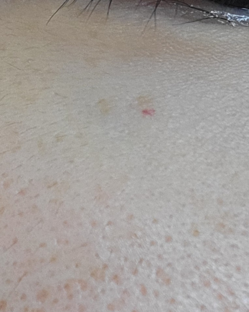 크기가 너무 작아서 진단을 위해 확대경 검사와 같은 진찰이 필요할 것이라 보입니다. 가까운 피부과에서 진료를 받아보시기를 권해드립니다.