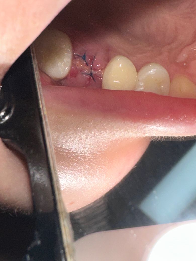 25일 토요일 발치했던 부분에 뼈이식과 식립을 한 뒤 꼬매놓은 상태입니다.수술한 부위는 양치대신 가글을 해주었고 하루 3회정도 핵사메딘 가글도 따로 해주었습니다.