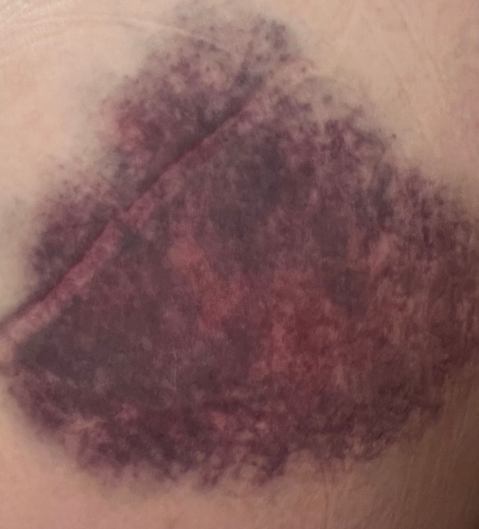 피하출혈로 인해 멍이 크기 때문에 흡수, 소실까진 시간이 많이 걸리겠습니다.