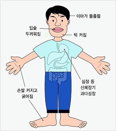 이는 거인병과는 다르게 큰 키, 마른 체형, 긴 팔다리등을 특징으로 하게 됩니다.