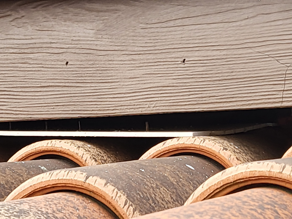지붕에 올라가실수 있다면 못이 빠진 자리에 다른 나무를 괴서 끌어올리고 빈자리에 실리콘 쏴주면 되지 않을까요?