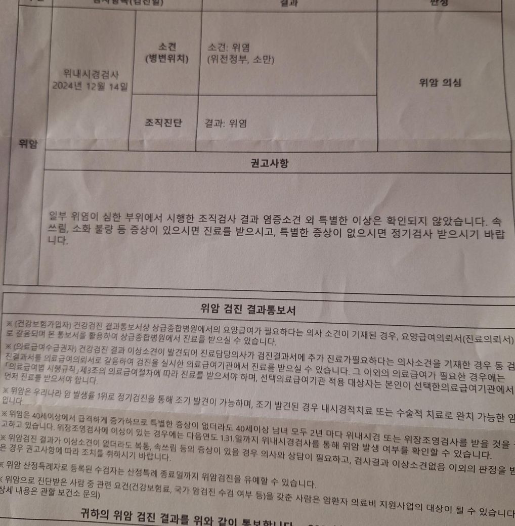 위내시경 검진결과표 확인부탁드려요 꼭이요