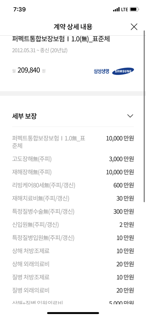 자기부담금율이 10%밖에 되지 않고 갱신기간도 3년인 아주 좋은 상품입니다.
