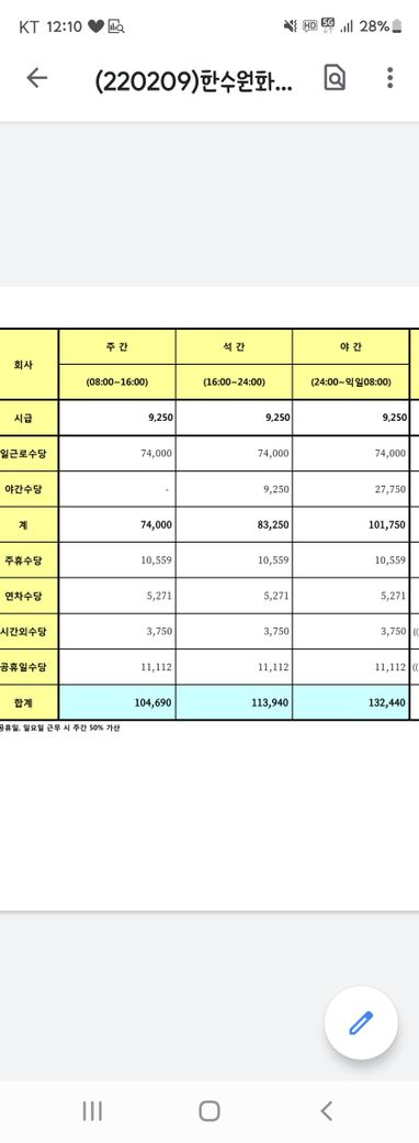 3조4교대 근무 임금협의문의드려요