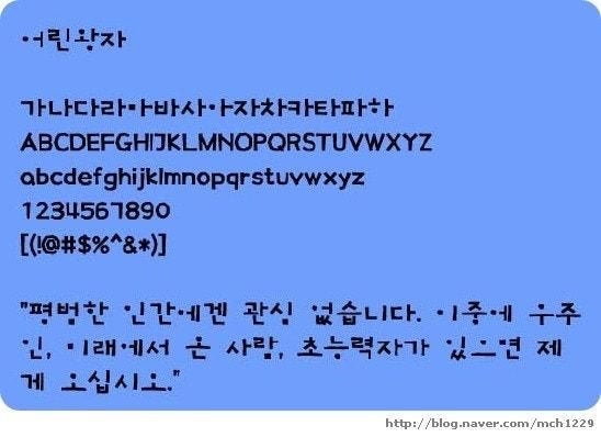 어린왕자체라고 하는데 갤럭시 폰트로 설정하려니 아무리 찾아도 안 나와요
