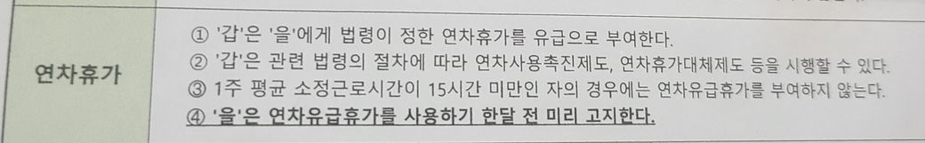 몇개월 째 임금체불인 상태고 근로계약서 연차휴가에 사진과 같이 적혀있는데