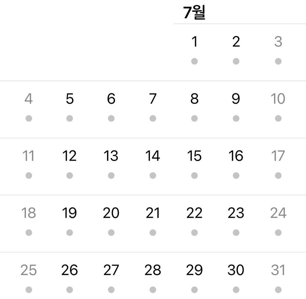 월-금 5시간씩 근무 중입니다. 7월 둘째 주에 월~금(5,6,7,8,9일) 근무하고 셋째 주에 월화수(12,13,14일) 휴가 냈고, 목금(15,16일)은 출근했습니다.