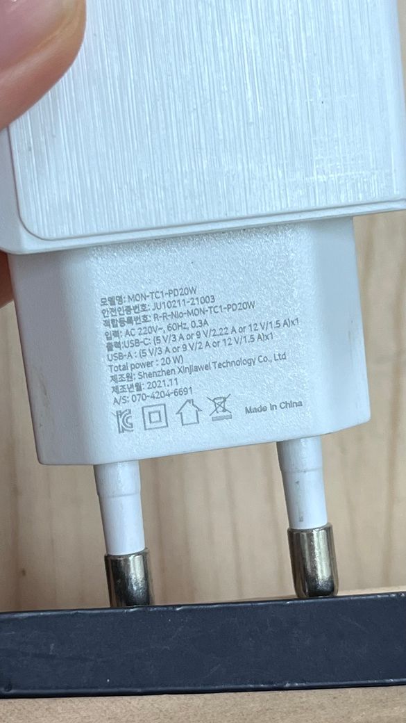 위가 5W이고 아래가 20W로 보이므로, 고속 충전을 지원하지 않는 걸 찾으시는 거라면 위의 충전기를 이용하시면 되지만, 사실상 20W로 충전해도 문제는 없으리라 보입니다. 해당 제품의 가능 전압을 확인해 보시기 바랍니다.