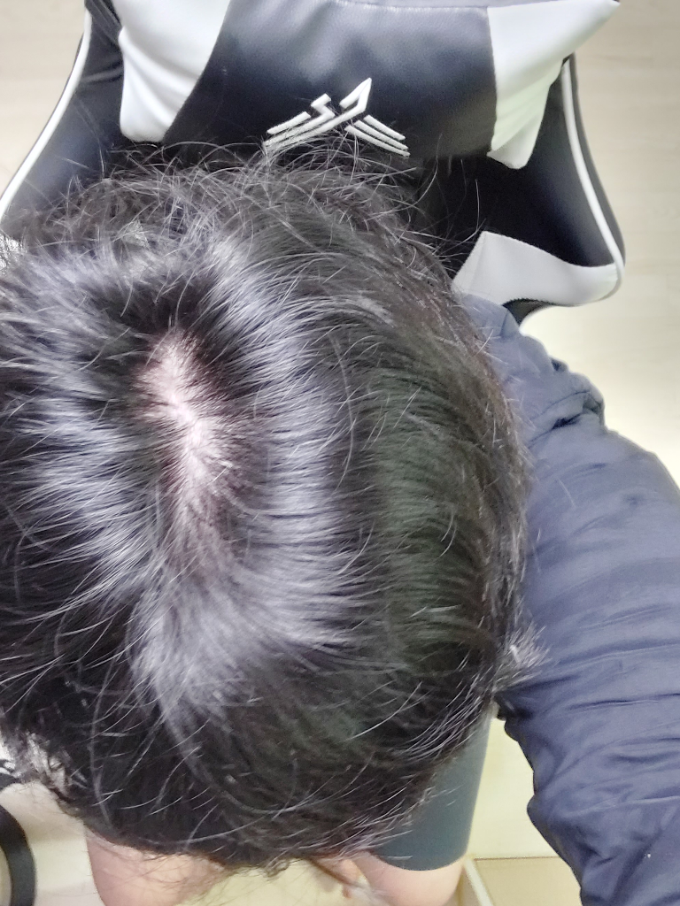 딱히 두드러지는 남성형 탈모는 없고, 남성은 청소년기에 호르몬 변화가 크기에 모발에도 변화를 느끼는 편입니다.