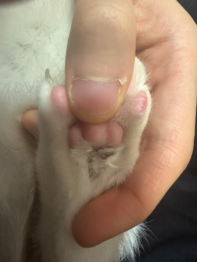사진상으로는 털이 뭉친건지 발바닥 패드뿔이 생긴건지 구분할 수 없습니다. https://diamed.tistory.com/m/206