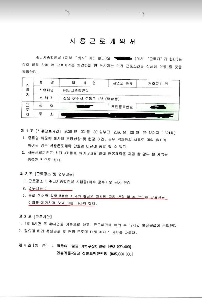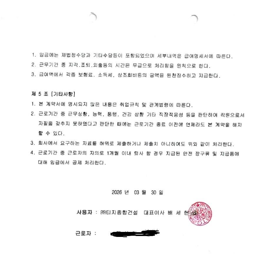 8. 듣기론 제가 입사했을 때가 현장 공정률 70% 완료 상태였고, 5월 말이면 끝날 거 같다는데 지금 저 근로계약서 내용대로라면 회사 사정 말하면서 일 끝나자마자 팽할 수도 있을 거 같은데요...