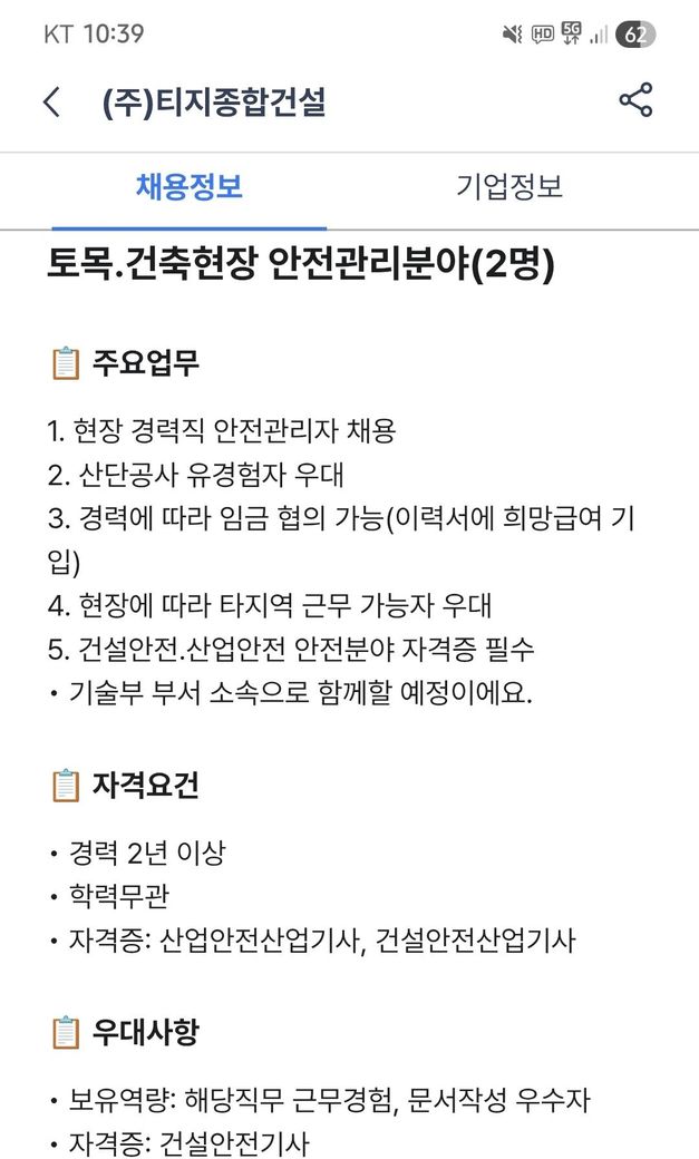 1. 안전관리자로 구직공고가 올라왔고, 거기에 지원했고 합격했어요. [현재 재직중]