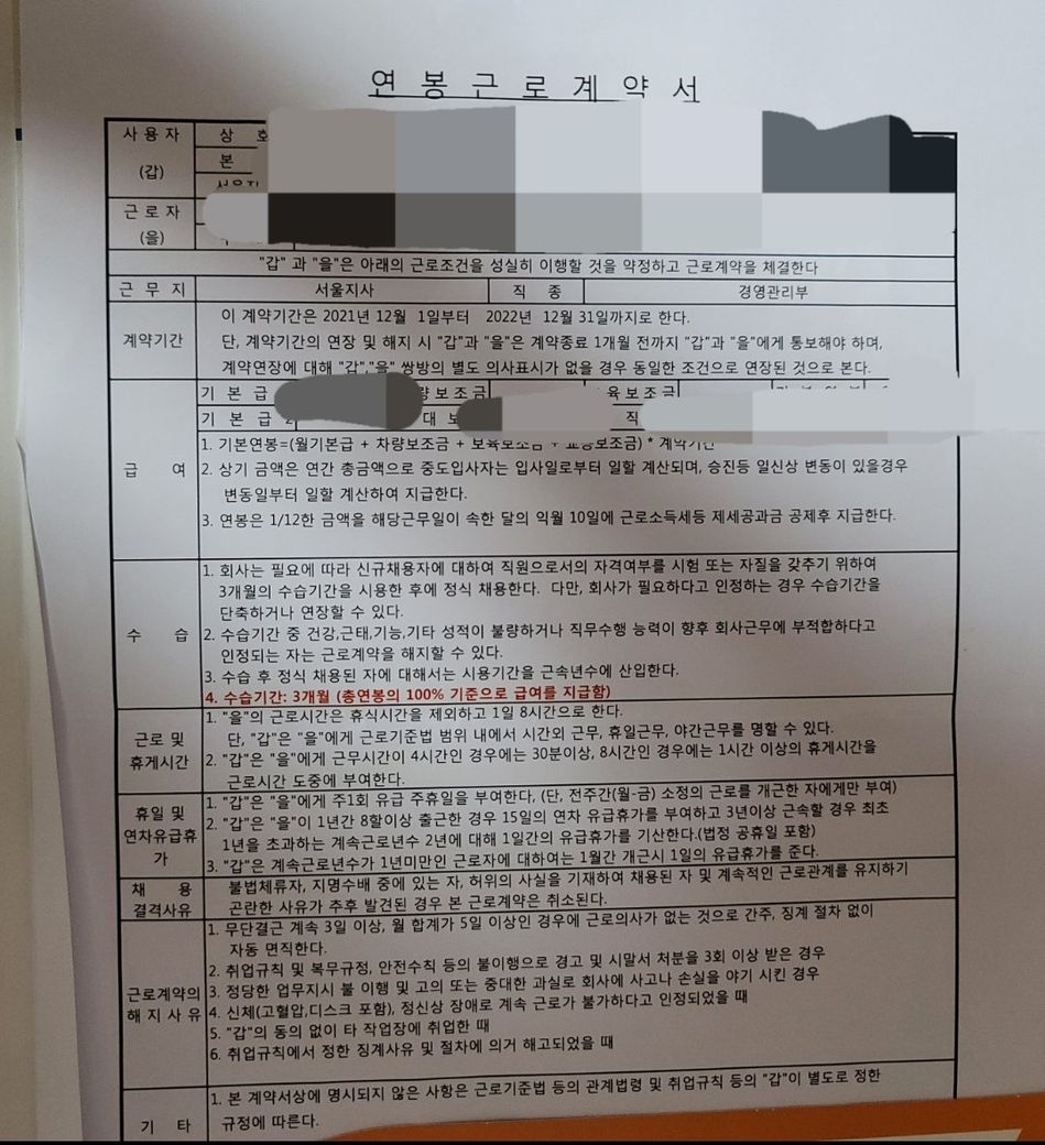 3. 한편 수습기간 평가를 통하여 정직원 채용 거부를 할 수도 있습니다.