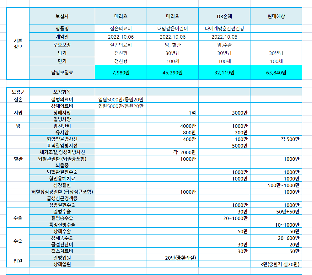 보험에는 정답이 없으니 참고만 해주시기 바랍니다 ^^