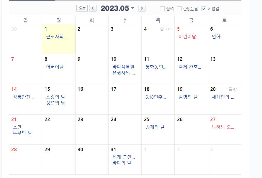 2023년 5월 근로자 휴무는 어떻게 부여해야 되나요???