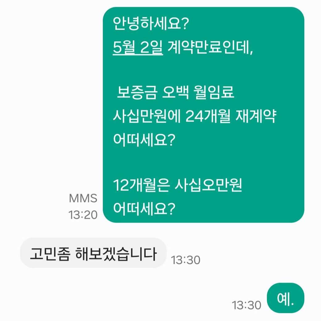 사진처럼 올해 5월에 월세 구두계약 연장이 된 상태에서 이직을하게되어 1개월 살고 이사를 한상태인데요. (사진상으로는 계약서를 주신다곤 했지만 안주시고 구두계약도 계약이라는 입장이십니다) 다음 세입자가 구해지지않아 월세가 계속 나가야하는 상황입니다. 혹시 2년 내내 안구해지면 살지도 않는 곳의 월세를 계속 내야하는 건지 아니면 다른 방법이 있는지 문의드립니다