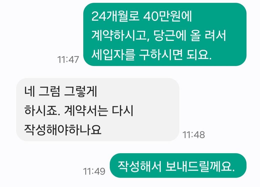 월세 구두계약 후 이사하게된 경우 문의