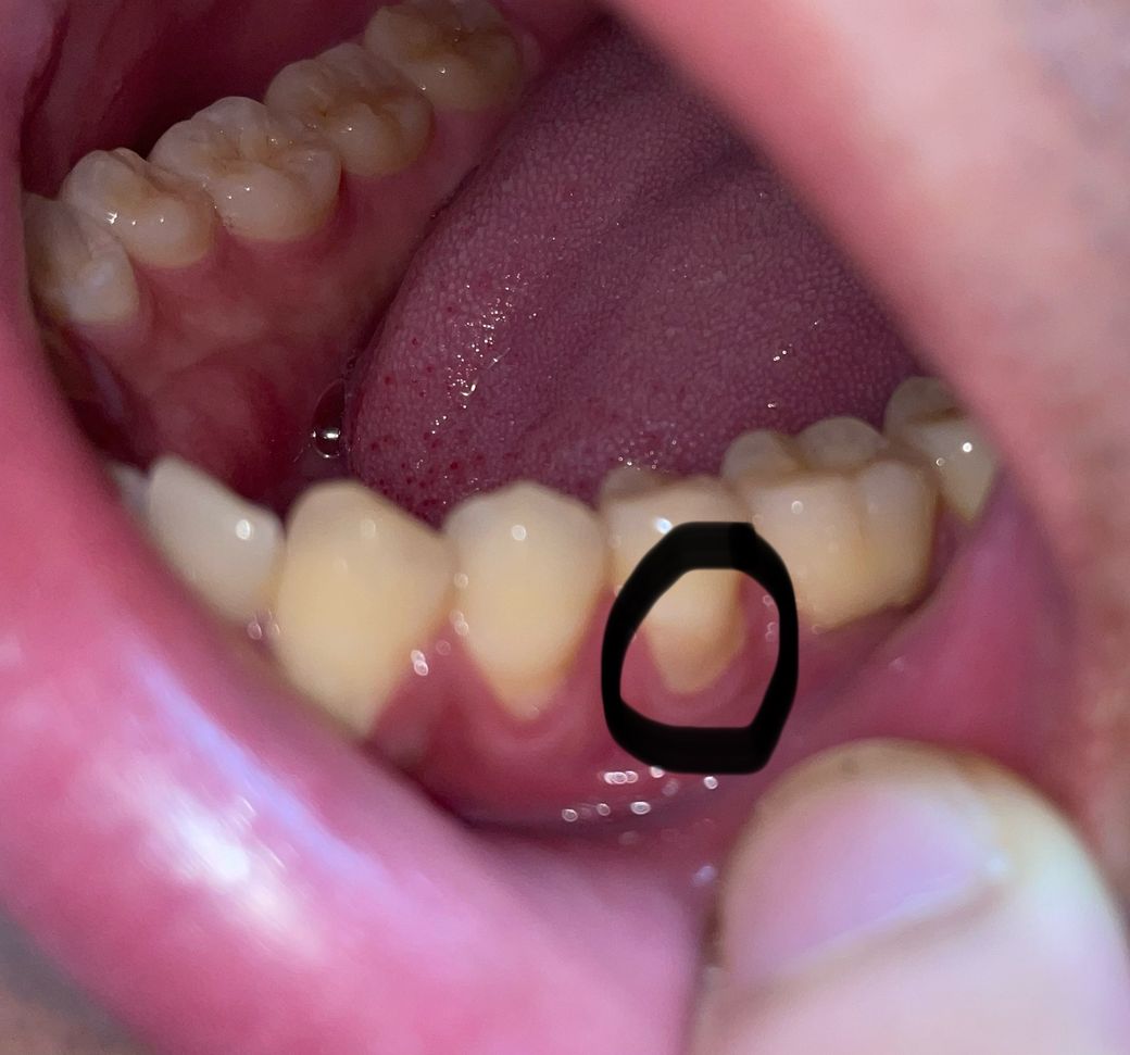 사진으로 봤을 경우에는 치경부위를 레진으로 충전하고 난다음에 잇몸위로 재료가 덮혀 있는것으로 보입니다.