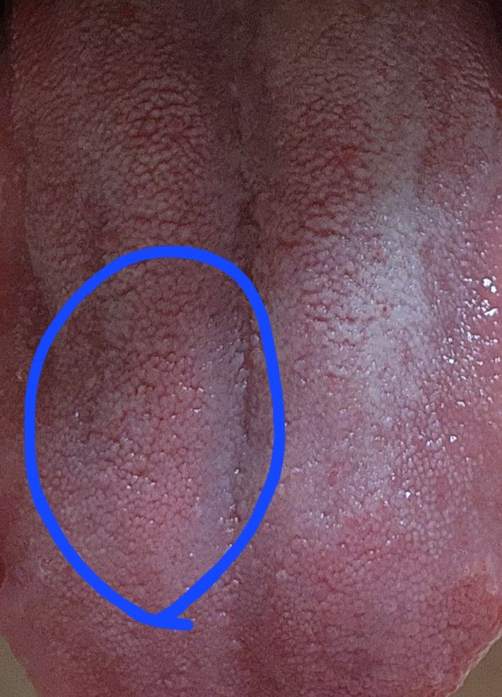 현재와 같은 양상은 지도 모양혀를 감별할 필요가 있겠습니다. 지도 모양혀는 혀 표면에 염증성으로 발생하는 질환이지만 무해하다고 알려져 있습니다. 혀에 존재하는 유두가 변형되거나 탈락되면서 경계가 있는 섬처럼 보이는 경우가 많습니다. 이런 병변은 회복되고 나서 다른 부위로 이동하기도 하지만 일반적으로 양성 질환으로 간주합니다. 보기에는 염려스러운 것이 사실이지만 감염이나 암을 유발하는 것은 아니지만 간혹 혀 불편감이나 소금이나 설탕등에 과민성을 증가시키기도 합니다.
