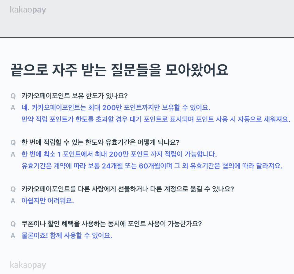 예전에 포인트를 모아놓고 잃어버린 경험이 있습니다. 다시 이런 경험을 하고 싶지 않습니다. 카카오페이에도 포인트가 있는데 소멸기한이 언제인지 알려주세요.