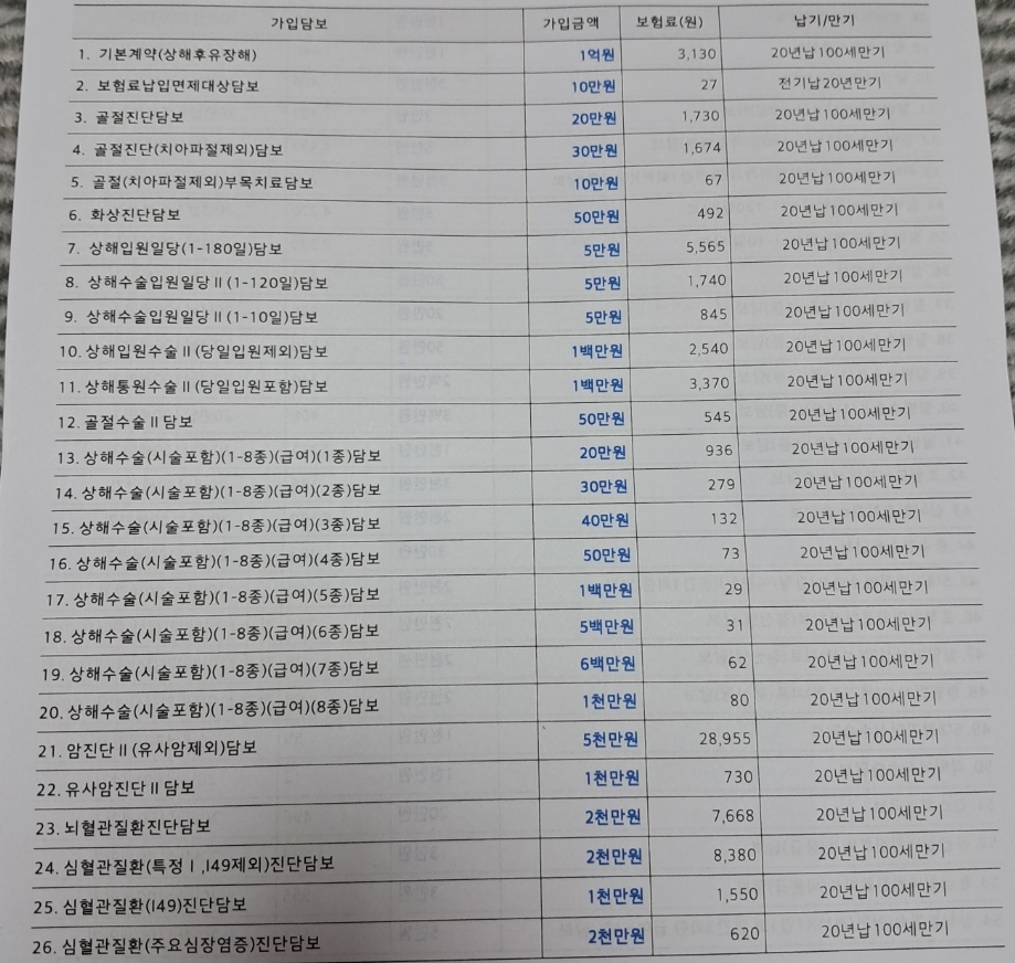 더군다나 보장도 반밖에 설계를 못한이유도 보험료가 너무 비싸서 일겁니다.