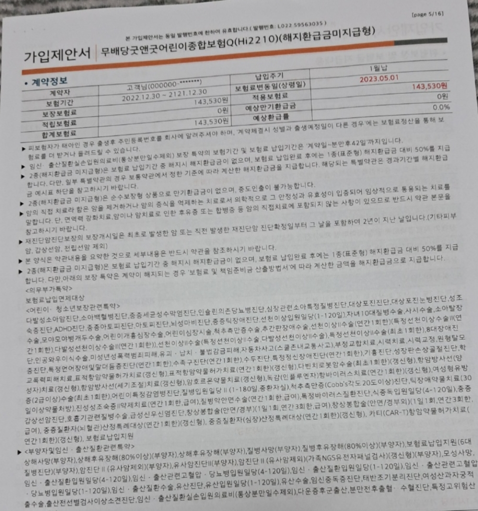 어린이보험으로 가입을 하신건 정말 잘 하신거지만