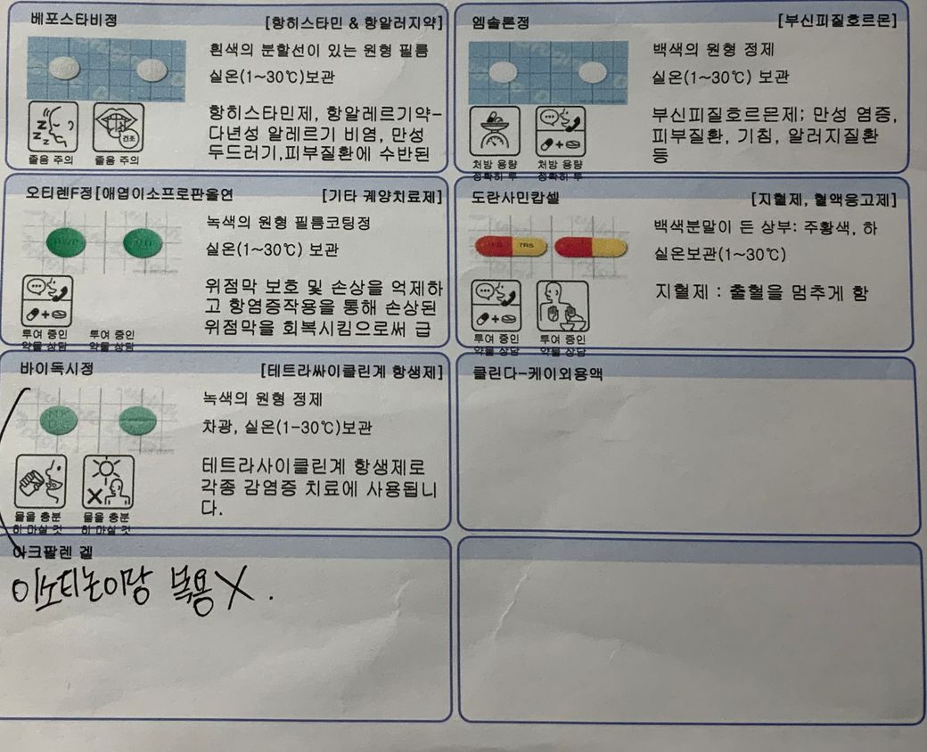 바이독시정은 테트라싸이클린계열이라 이소티논과 복용하면 안되는걸 알고 있는데, 다른 약들은 이소티논과 함께 복용해도