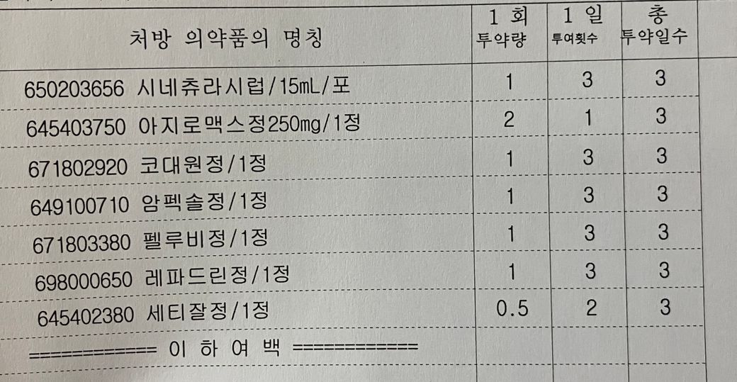 내과 감기 약처방 받았는데 약이 많은거 같아요
