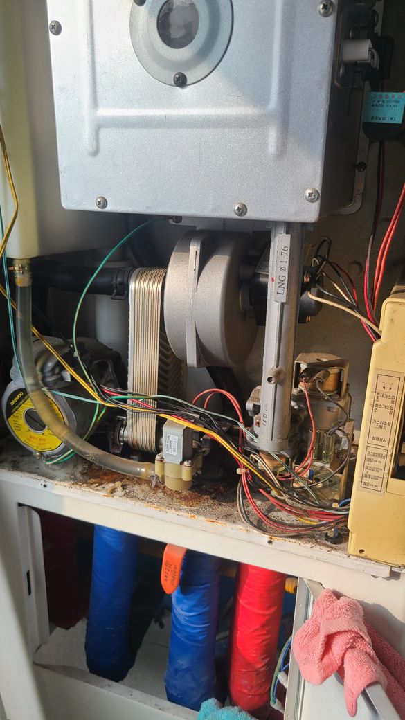 보일러에서 파이프(빨간색파이프만 물흘렀어요)타고 물이 뚝뚝떨어지길래 케이스 열어봤더니