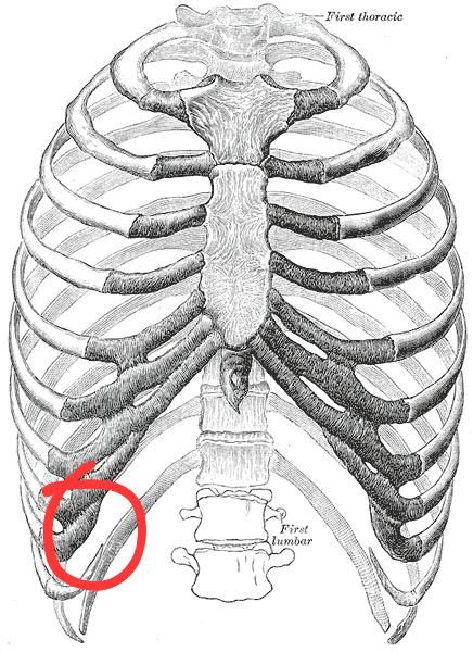 갈비뼈가 골절되어 돌출되지 않는 이상 복근을 찌르진 않습니다.