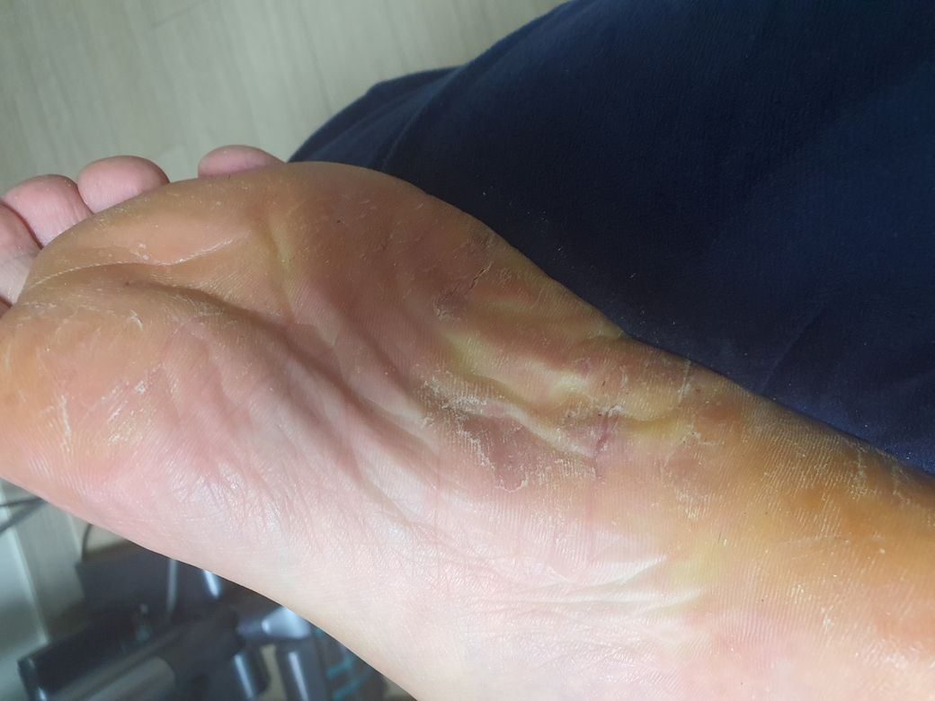 다양한 양상을 보인는데 발가락 사이가 갈라지고 껍질이 벗겨지는 형, 발바닥 전체가 벗겨지는 형, 물집과 염증이 생기는 형 등으로 나타날 수 있습니다.