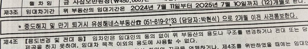 위 사진과 같이 임대창 계약서상의 임대차기간을