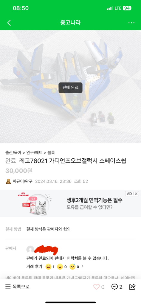 24년 3월 16일에 중고나라에서 정품이 맞는지 문의 후 레고를 구매하였습니다.