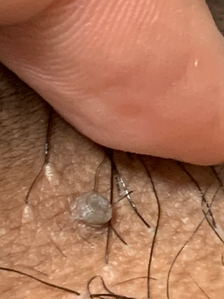 사진상으로 명확한 판별은 어렵지만 곤지름이라고 하는 콘딜로마의 가능성이 있습니다. 곤지름은 인유두종바이러스 (HPV)에 의해서 발생하며 일반적으로 단일 혹은 무리를 이루어 발생하는 부드럽고 매끈하거나 융기된 구진이나 반점같은 병변이 항문과 성기 부위에 나타나는 경우 의심할 수 있습니다. 단순한 시진으로만 감별이 어려울 수 있어 조직검사등이 필요할 수도 있습니다.