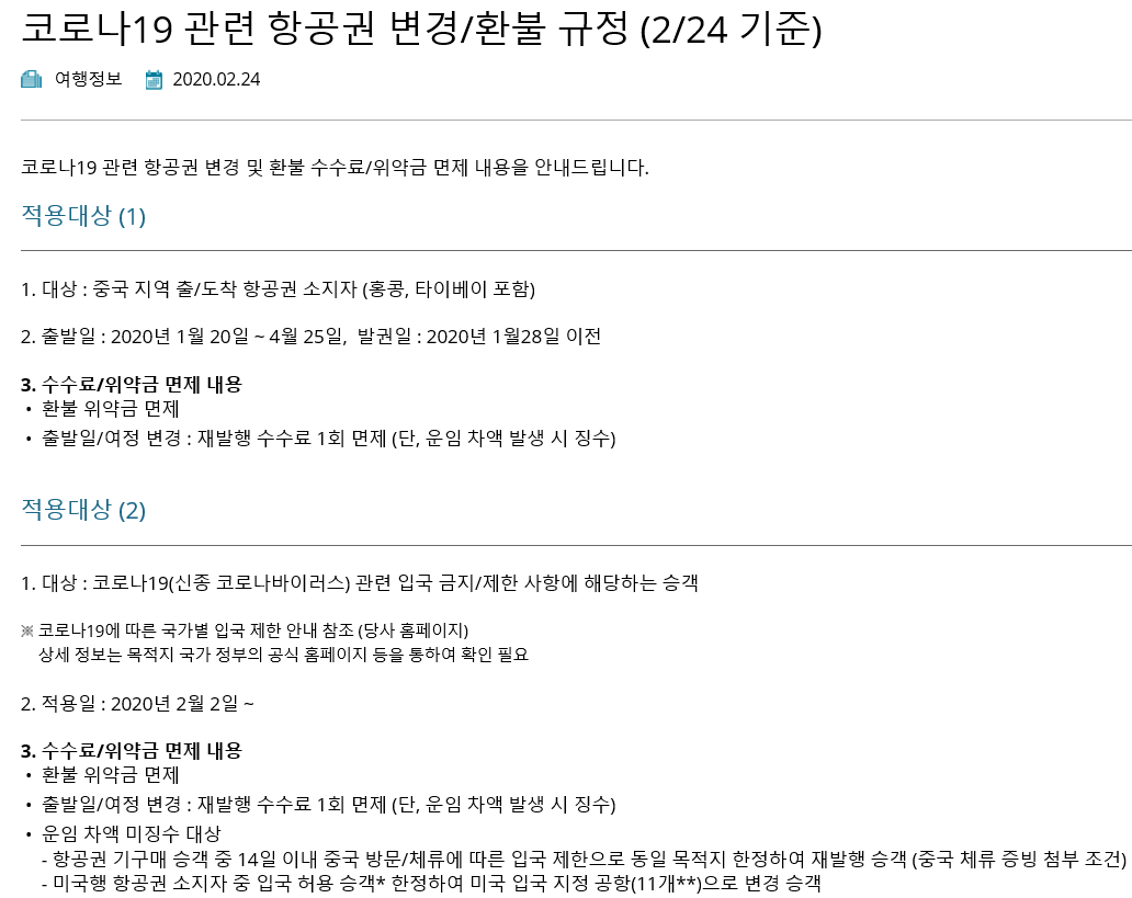 따라서 해당 항공사의 홈페에지에서 안내 사항을 확인하시기 바랍니다.